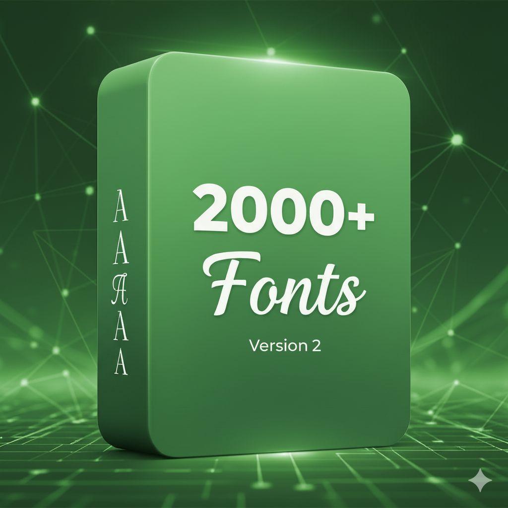 2000+ Premium Fonts (Version 2) – Updated collection with elegant, modern, vintage, handwritten, and bold styles for every design need.